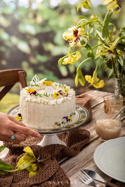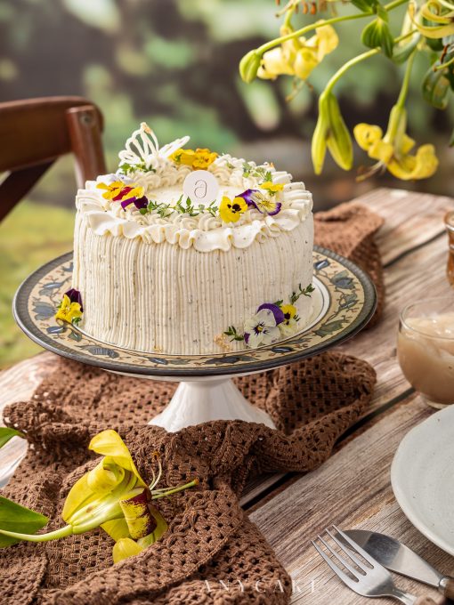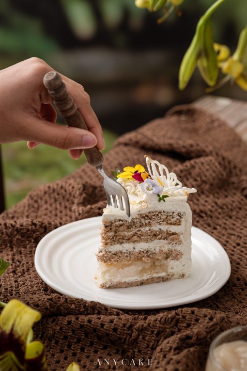 Trong từng lớp bánh, có hương hoa nhài thoang thoảng, dịu dàng và thanh khiết; có vị mứt mãng cầu được nấu thủ công chua chua ngọt ngọt, dẻo sánh như chút nắng cuối hè. Và còn có lớp kem whipping tươi mát, như gom hết hương vị trong vườn để ôm trọn lấy cốt bánh bồng bềnh..