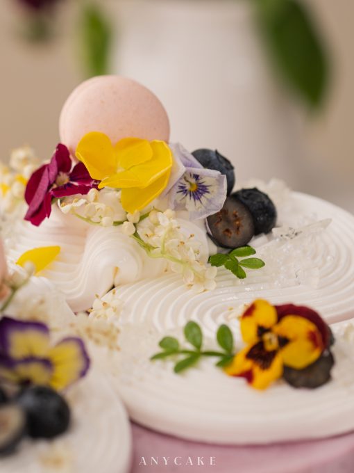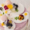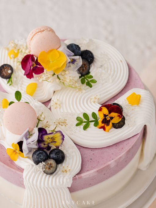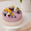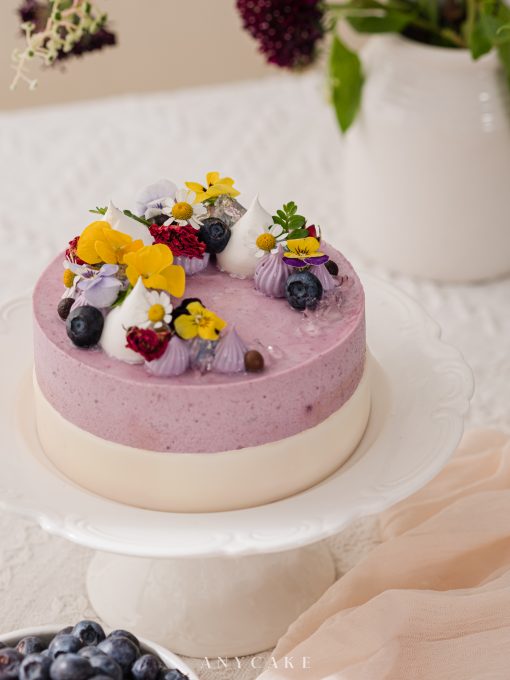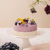 Chiếc bánh Blueberry Yogurt Mousse khoác lên mình sắc tím dịu dàng, điểm xuyết những cánh pansy nhỏ xinh, vừa tinh tế, nhẹ nhàng, lại toát lên nét sang trọng thanh thoát. Bên ngoài là lớp socola mỏng mịn như một lớp áo choàng, ôm trọn phần nhân mát lạnh bên trong.
